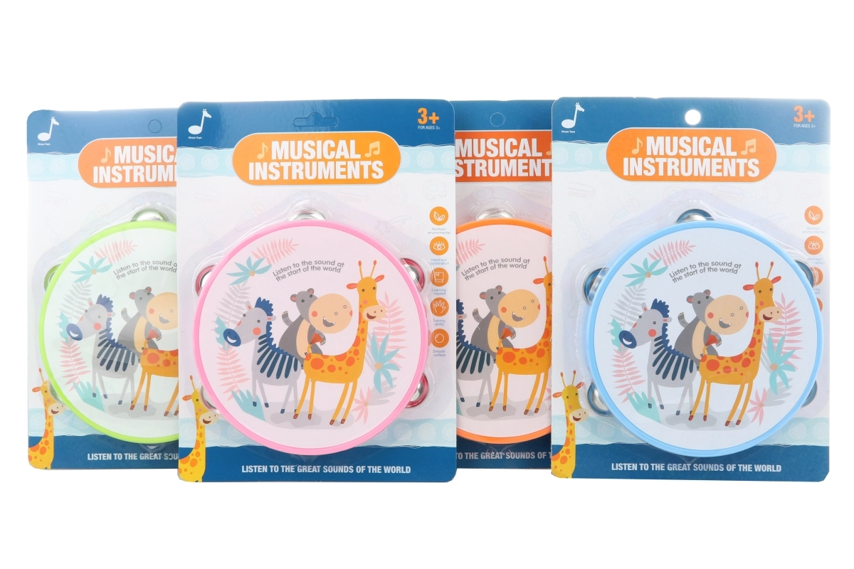 Anima el juego infantil con una colorida pandereta con motivos de animales de 16 cm de diámetro. Es ligera, segura e ideal para el primer acercamiento a la música. Fomenta el ritmo, la motricidad y la creatividad de los niños a partir de 3 años.