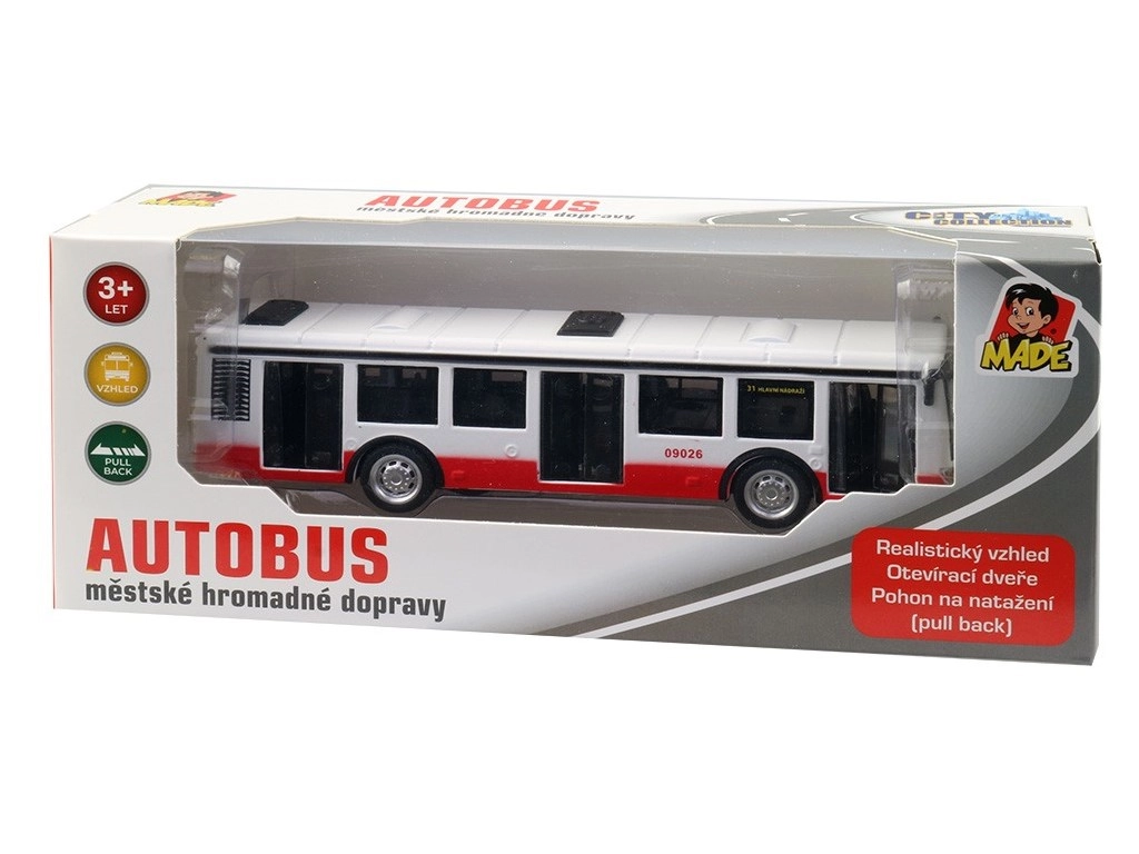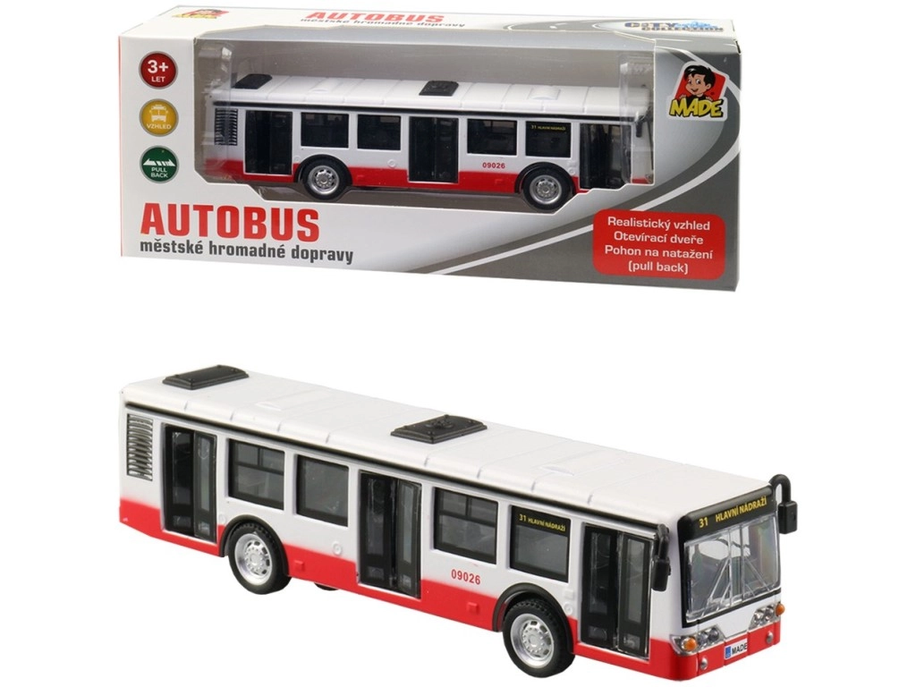 Elegante autobús de metal con diseño checo que encantará a pequeños y grandes fans del transporte público. Ofrece apariencia realista, puertas abatibles y mecanismo de retroceso. Su tamaño compacto es ideal para las manos infantiles y la resistente combinación de metal y plástico garantiza una larga durabilidad.
