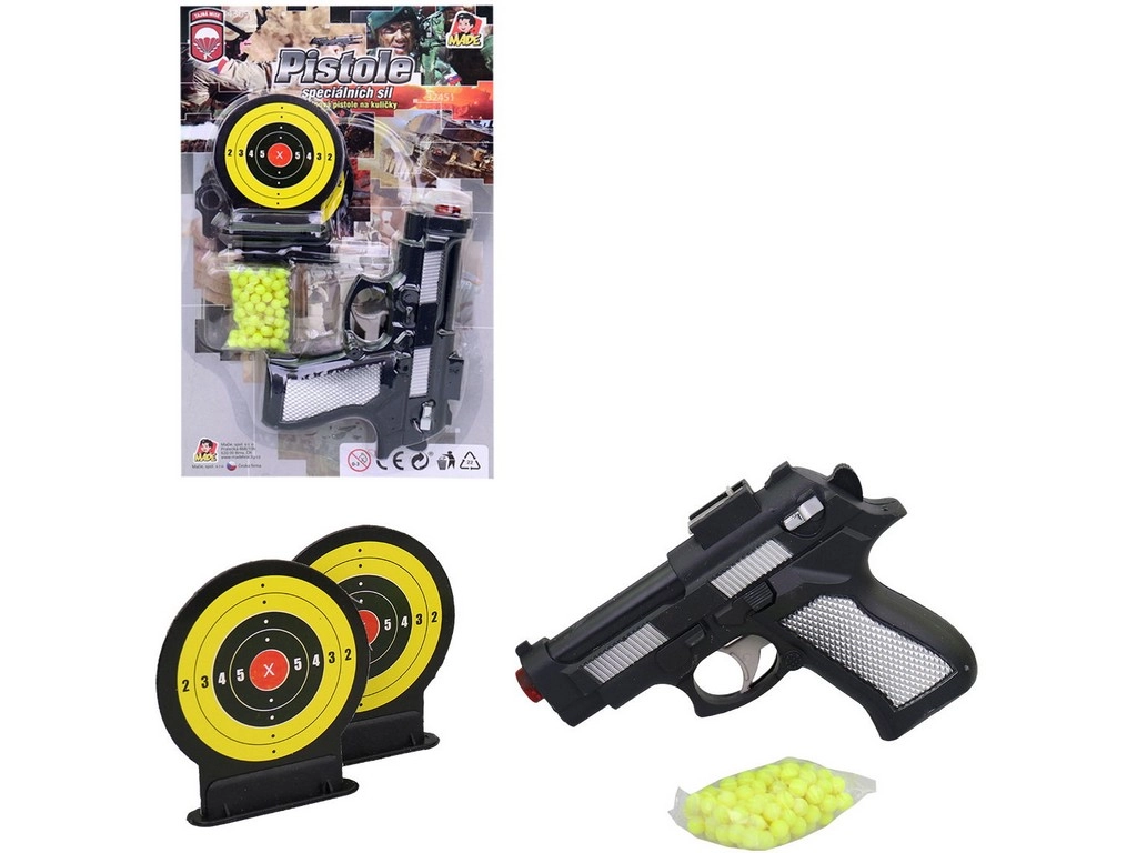 Esta pistola de bolitas es el juguete perfecto para pequeños tiradores a los que les gusta practicar su puntería. Gracias a las dos dianas incluidas, los niños pueden competir con amigos o mejorar por sí solos. La construcción de plástico, ligera y fácil de manejar, favorece un juego seguro y divertido.