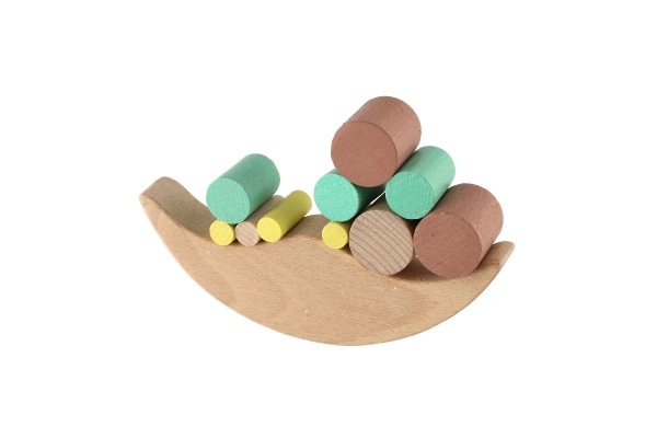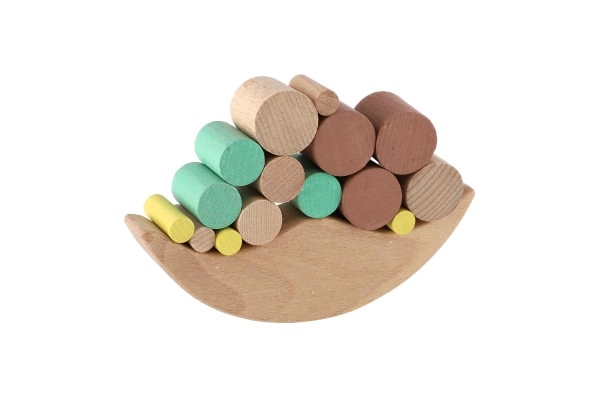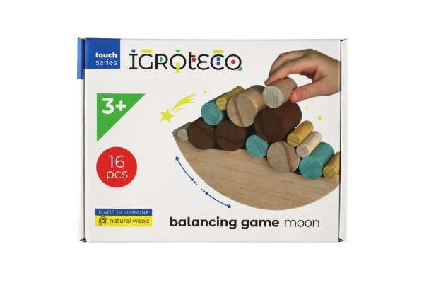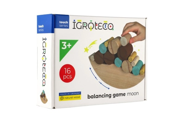 El juego de equilibrio Luna de IgroTeco ofrece una excelente combinación de diversión y aprendizaje. Con este juego, los niños practican el equilibrio, ya que los bloques deben colocarse cuidadosamente sobre una base semicircular que se balancea constantemente. El juego favorece el desarrollo de la imaginación espacial y el pensamiento creativo.