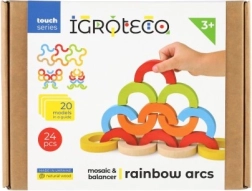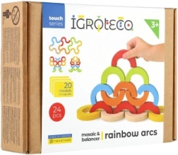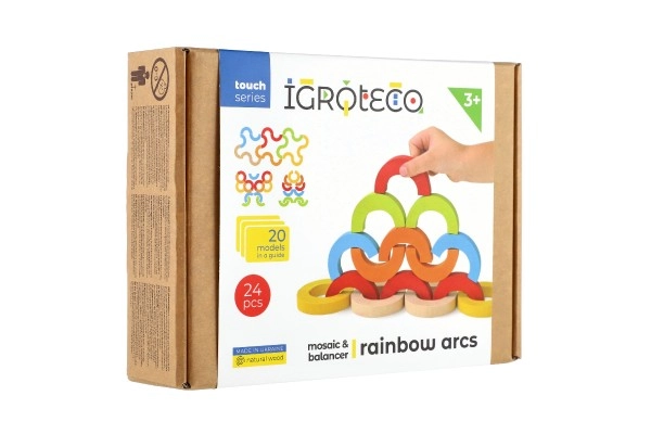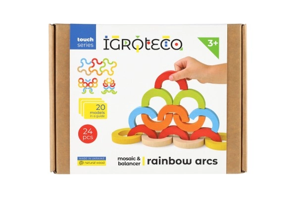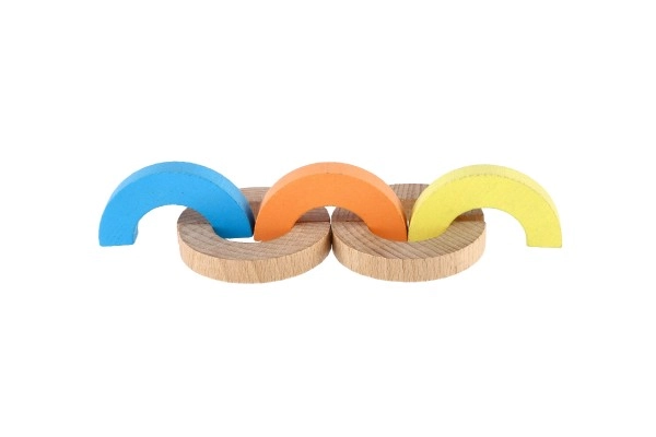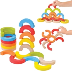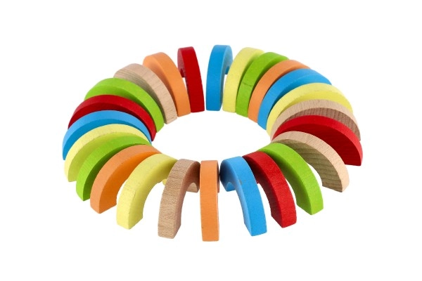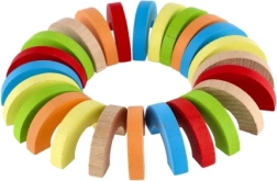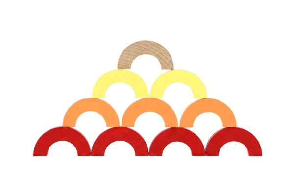 Los arcos arcoíris y semicírculos se pueden apilar en torres, puentes y retos de equilibrio. Así, los niños desarrollan la concentración, la estabilidad y la percepción espacial.