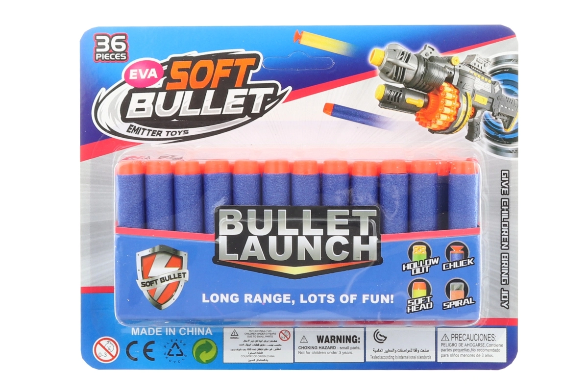 Disfruta de batallas más largas sin interrupciones gracias a este práctico set de 36 dardos de espuma de recambio. Los dardos son ligeros, resistentes y cuentan con punta blanda para un impacto delicado, lo que aumenta la seguridad durante el juego tanto en interiores como al aire libre.
