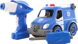 Divertido y creativo coche de policía atornillable con control remoto que desarrolla la motricidad fina y la imaginación. Los niños pueden montar el vehículo con el destornillador o el taladro, extraer el motor del taladro e insertarlo en el coche, que luego circula hacia adelante y hacia atrás. Incluye efectos de sonido, construcción robusta y un atractivo diseño policial para niños a partir de 3 años.