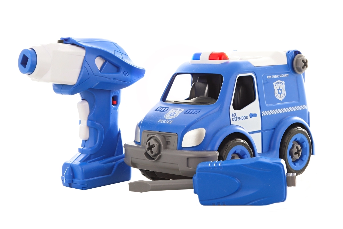 - Coche de policía, destornillador, taladro infantil con motor extraíble