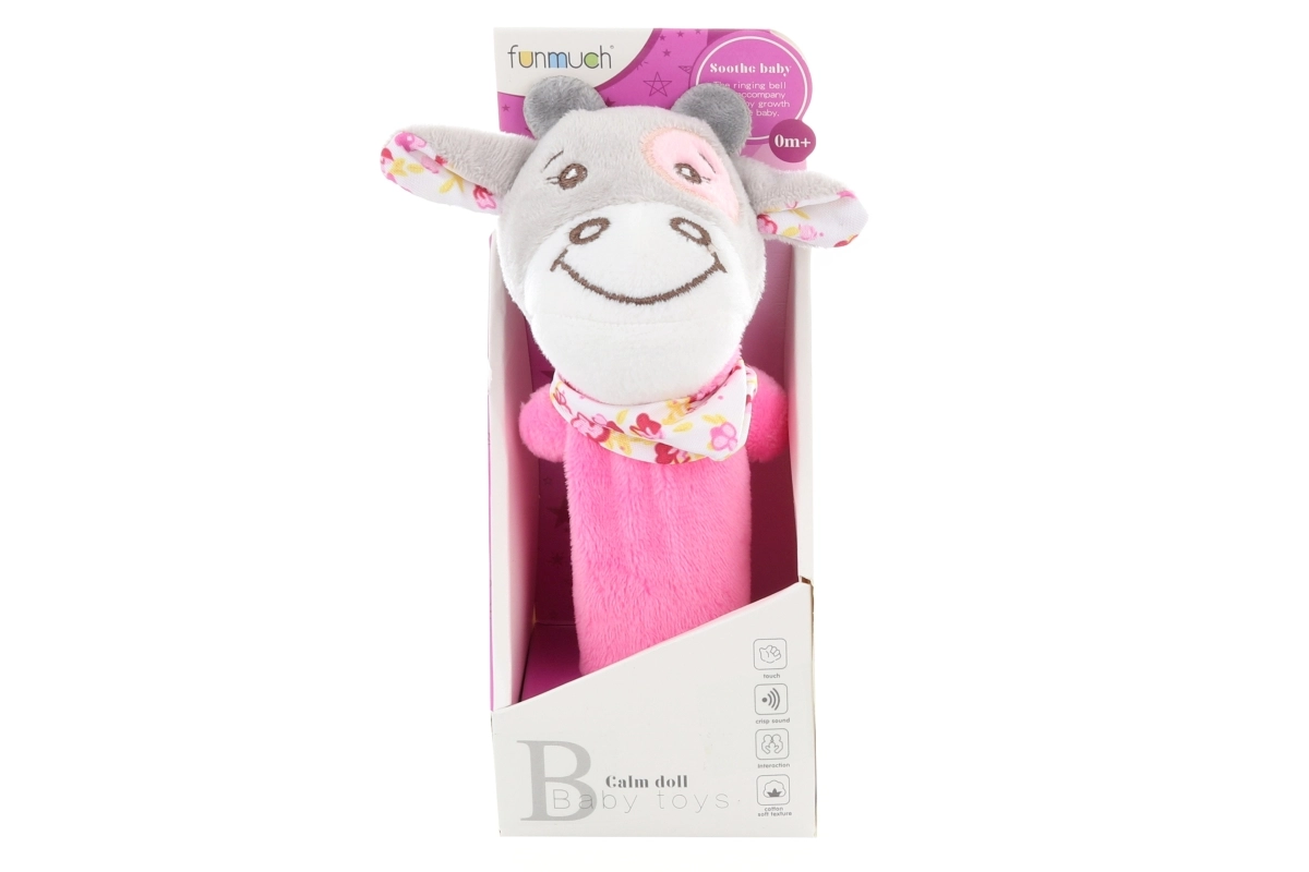 Este adorable sonajero de peluche con forma de vaquita rosa encantará a cada bebé. Ofrece un suave sonido silbante, un agradable material de peluche y un agarre cómodo para las manitas. Ideal para la estimulación sensorial, el desarrollo de la motricidad y la diversión en casa o de viaje.