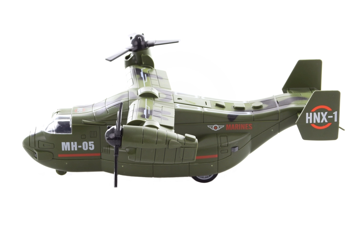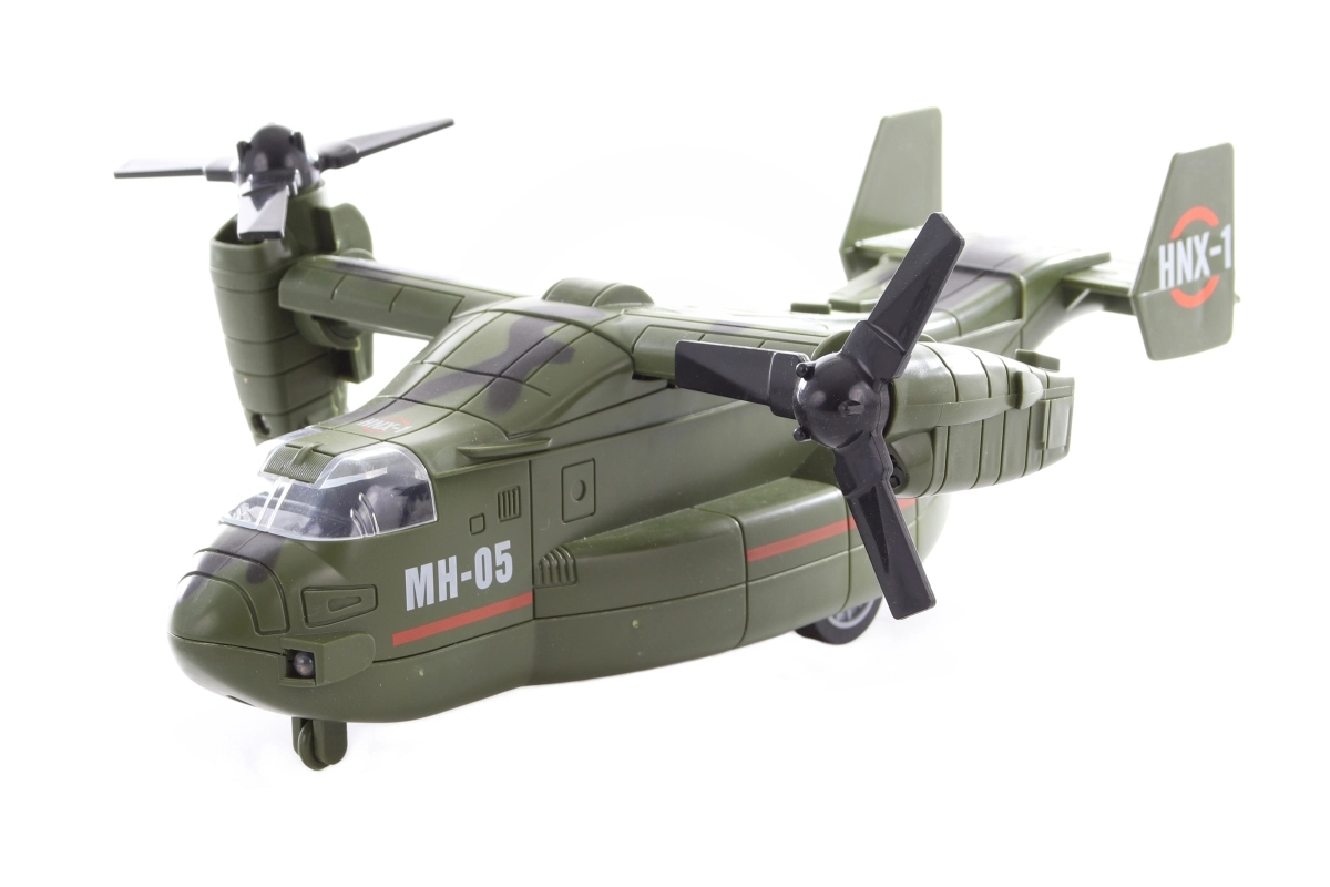 Este avión militar de plástico es una elección perfecta para los niños que adoran la tecnología militar y las historias llenas de acción. Al pulsar los botones se activan efectos de sonido y de luz, que estimulan la imaginación y sumergen a los niños en el juego. Gracias a su diseño resistente, es adecuado para el uso diario.