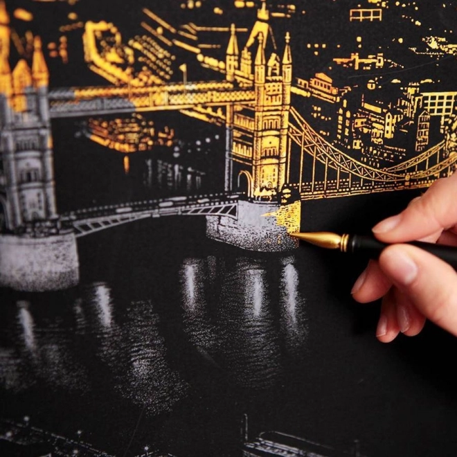 Descubre la magia de la técnica de rascado: bajo la capa negra se oculta un fondo dorado que aporta un efecto contrastado y elegante a cada trazo rascado. El motivo de la icónica Ópera de Sídney en versión nocturna encantará tanto a principiantes como a avanzados, y la imagen resultante será una decoración original.