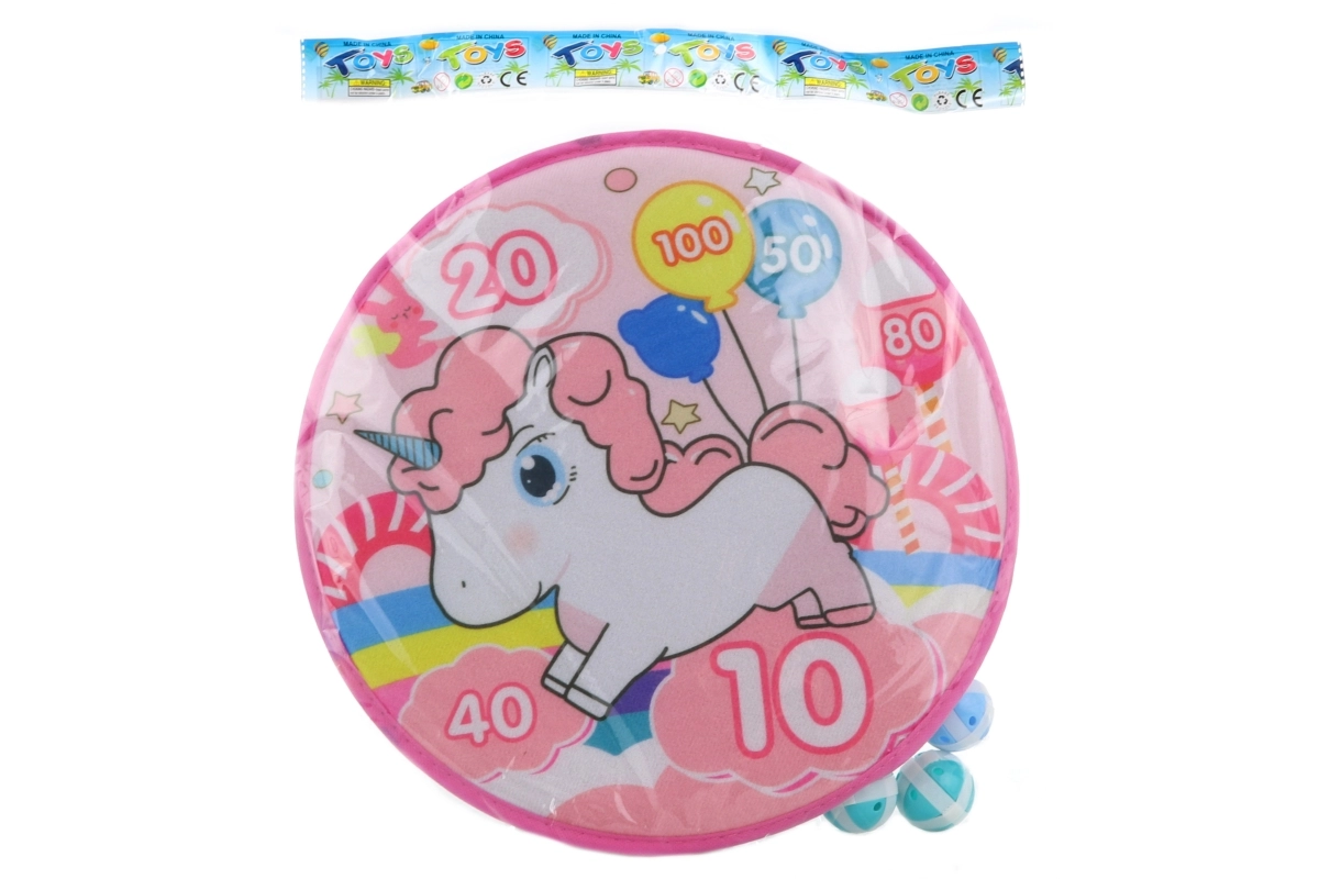 Disfruta de mucha diversión con esta colorida diana con unicornio, completamente segura para los más pequeños gracias al velcro. Las pelotas se adhieren fácilmente a la superficie, de modo que los niños pueden concentrarse en la precisión y sumar puntos sin riesgo de lesiones.