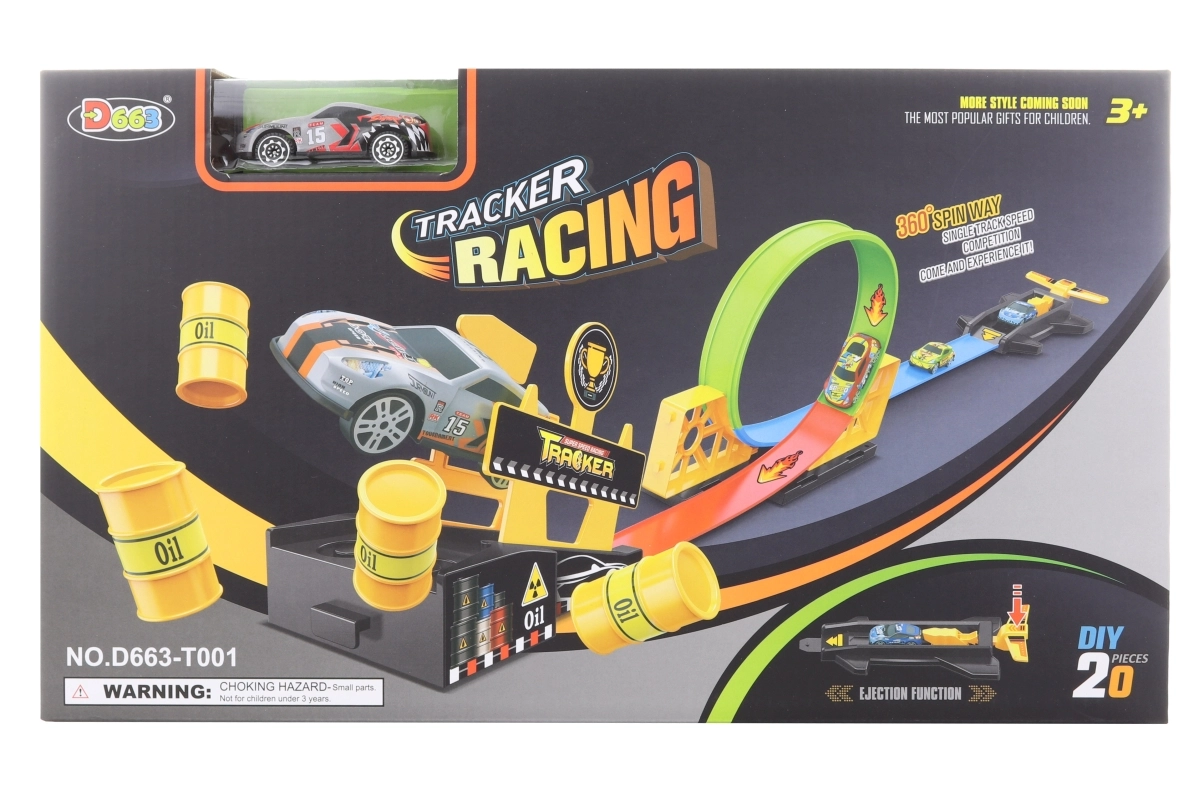 Esta pista lanzadora es ideal para los pequeños amantes de la velocidad. Con un simple lanzamiento, el coche recorre la pista y ofrece una conducción emocionante llena de diversión. El embalaje compacto facilita el almacenamiento y el transporte.