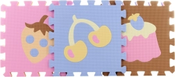 Adorable alfombra de espuma infantil con motivo de delicias, frutas y postres, que crea un espacio de juego seguro y suave. Amortigua el ruido, aísla del frío, es lavable y gracias a su superficie estriada no resbala. El paquete incluye 9 piezas cuadradas de 28 × 28 cm y un grosor de 0,7 cm.