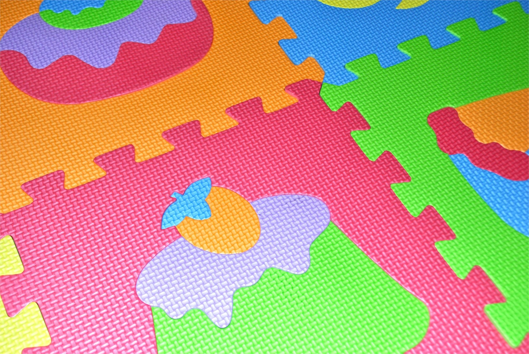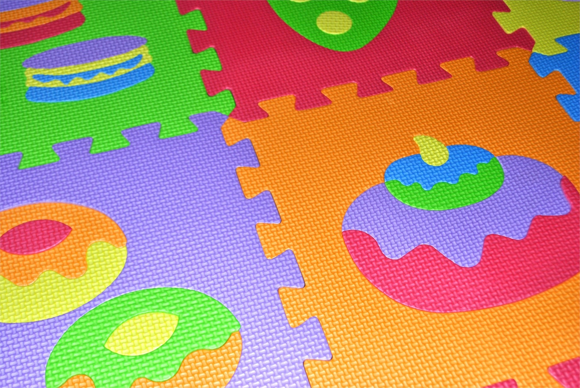 Este rompecabezas de espuma con motivos de alimentos es ideal como alfombra de juego para la habitación infantil. Gracias al material suave, es seguro, agradable al tacto y fácil de mantener. La superficie estriada garantiza una mejor estabilidad durante el juego y minimiza los deslizamientos.