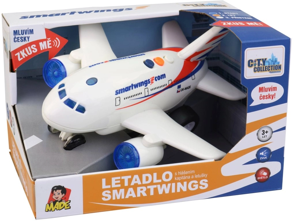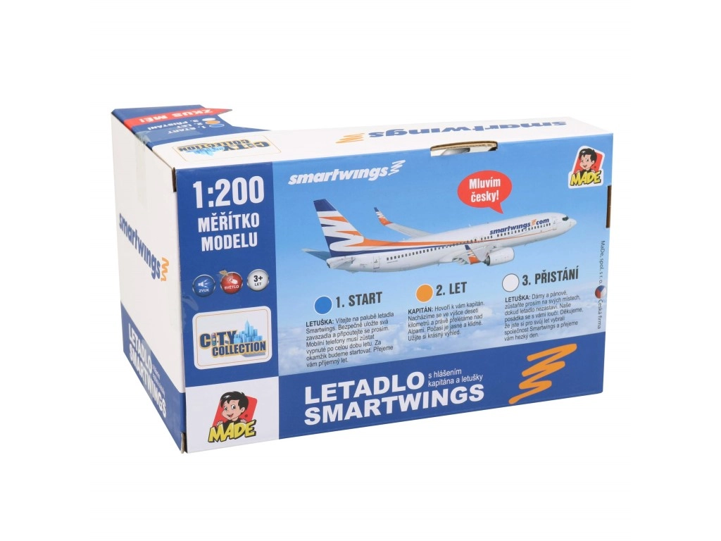 Vive la magia del vuelo con el modelo de avión Smartwings, que cuenta con anuncios reales y efectos como en un avión de verdad.