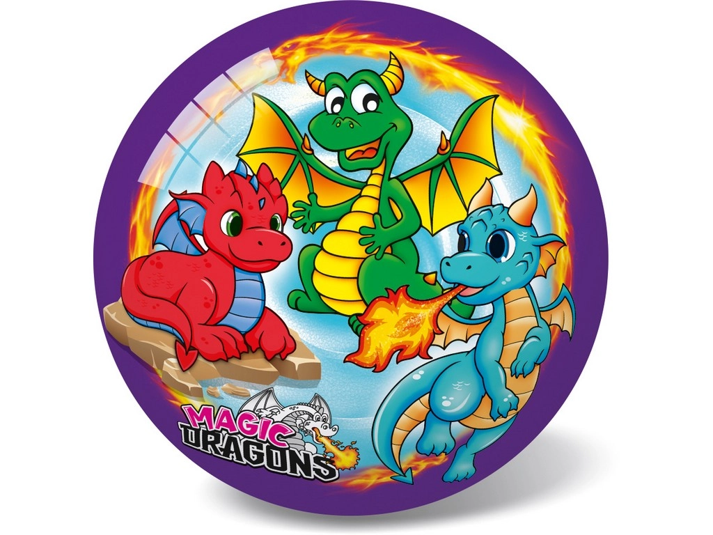 Esta colorida pelota con simpáticos dragones ofrece a los niños un sinfín de movimiento y diversión. Gracias a su diámetro de 23 cm, se sujeta bien con manos pequeñas y es ideal para jugar en el jardín, en el parque o en interiores. La superficie brillante se limpia fácilmente, por lo que la pelota luce como nueva durante más tiempo.