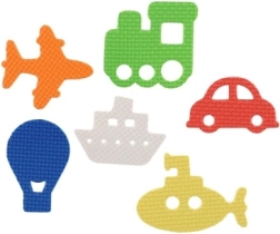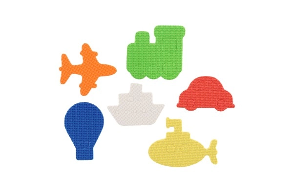 Descubran el mundo del transporte directamente en la bañera. Este divertido set incluye avión, tren, barco, coche, globo aerostático y submarino. Las piezas de espuma flotan en la superficie, se adhieren a superficies lisas al humedecerse y, gracias a sus colores vivos, invitan al juego creativo.