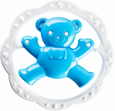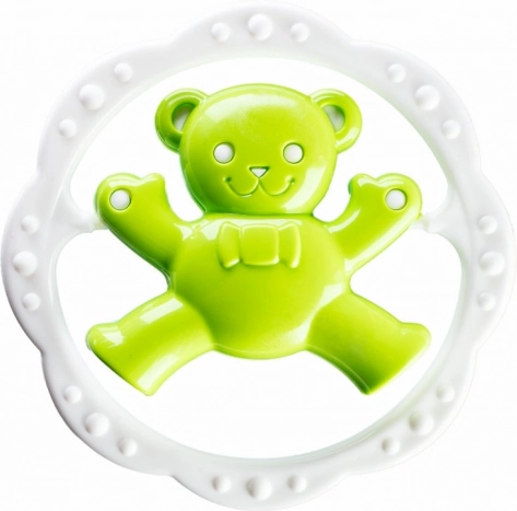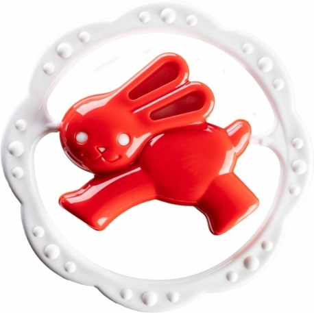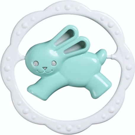 Colorido sonajero para bebés con mordedor en forma de aro y motivo de osito o conejito que ayuda a calmar las encías durante la dentición y, al mismo tiempo, desarrolla la motricidad fina y la percepción visual. Su diseño compacto y ligero es ideal para las manos pequeñas del bebé.