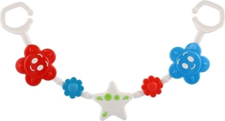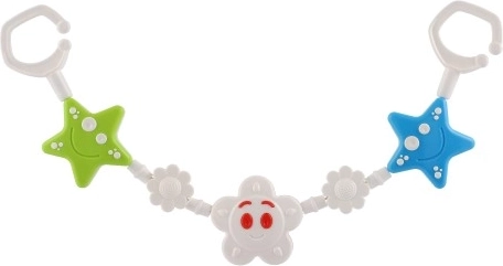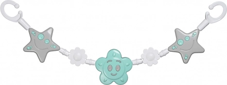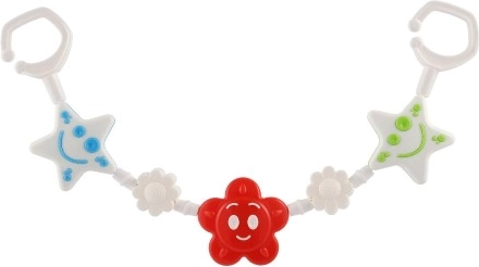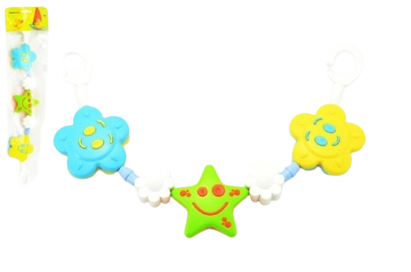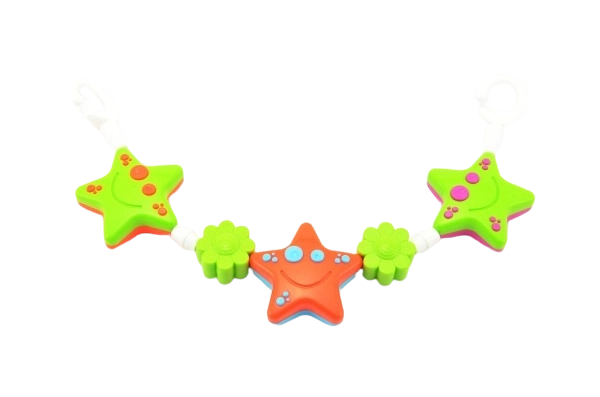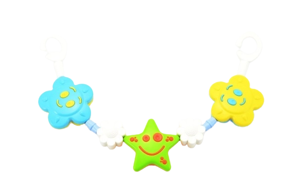 Este colorido juguete de cadena con sol y estrellitas se fija fácilmente al cochecito, a la silla de coche o a la cuna. Estimula la percepción visual, la motricidad fina y entretiene al bebé tanto en los desplazamientos como en casa. Gracias al plástico resistente y al diseño seguro, es ideal para el uso diario.