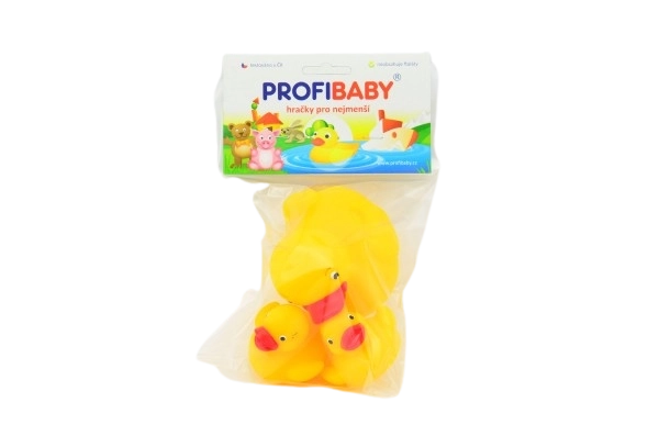 Adorable juego de tres patitos de goma para divertirse en el baño y en la piscina. El material suave es agradable al tacto y seguro para los más pequeños. Apto desde el nacimiento, se limpia fácilmente y flota de maravilla en la superficie del agua.