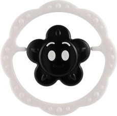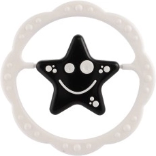 Los bordes texturizados funcionan como un suave mordedor para calmar las encías irritadas. El motivo contrastado de estrella/flor en el centro atrae incluso a los bebés muy pequeños que aún entrenan el enfoque visual. El juguete está hecho de plástico de calidad y es adecuado para el uso diario en casa o de viaje.