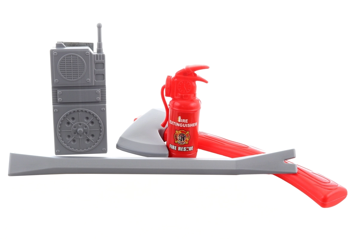 Set para pequeños bomberos que incluye todo lo necesario para jugar a ser rescatistas. Chaleco de bombero, walkie-talkie, hacha, pata de cabra y extintor garantizan horas de diversión para cada pequeño valiente.