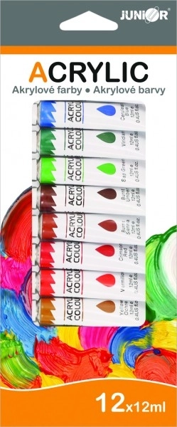 En una caja compacta (aprox. 11 × 26 cm) encontrarás 12 tubos de 12 ml que se almacenan y transportan cómodamente. Las pinturas acrílicas secan rápido, son resistentes una vez secas y se mezclan muy bien, por lo que podrás crear infinitas tonalidades para tus proyectos.