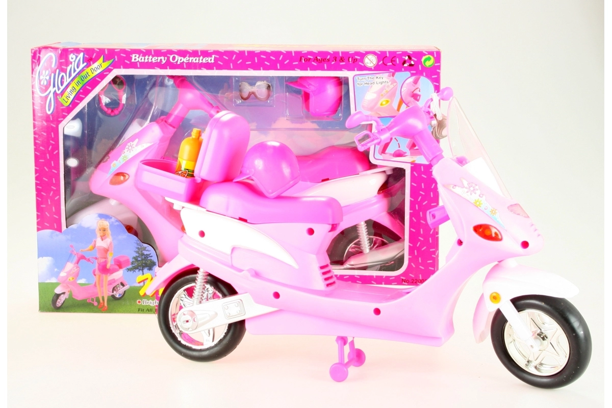 Las luces delanteras del scooter se encienden al girar la llave, lo que aumenta su autenticidad. Prepárate para la aventura con las muñecas gracias al portaequipajes trasero con tapa abatible para guardar pequeños objetos. El paquete incluye gafas de estilo, un casco y dos botellas de plástico para que tus muñecas siempre estén listas para el viaje.