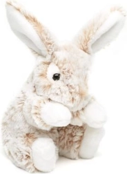 Adorable conejito de peluche en color beige y blanco, ideal como primer peluche para bebés desde el nacimiento. Tiene una superficie aterciopelada y suave, orejas largas y un tamaño compacto de 20 cm para abrazar y llevar fácilmente. Perfecto como juguete achuchable para la cuna y como decoración para la habitación infantil.