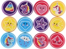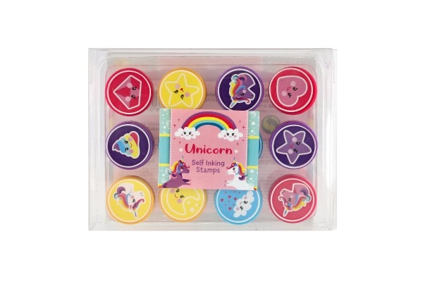Cada set incluye 12 sellos diferentes con unicornios, estrellas, corazones y nubes. Los niños pueden mezclar y combinar fácilmente las impresiones al crear tarjetas o decorar cuadernos.