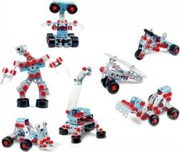 Construye vehículos, robots y otras estructuras. Incluye un manual que guía paso a paso la construcción de hasta 10 modelos distintos.