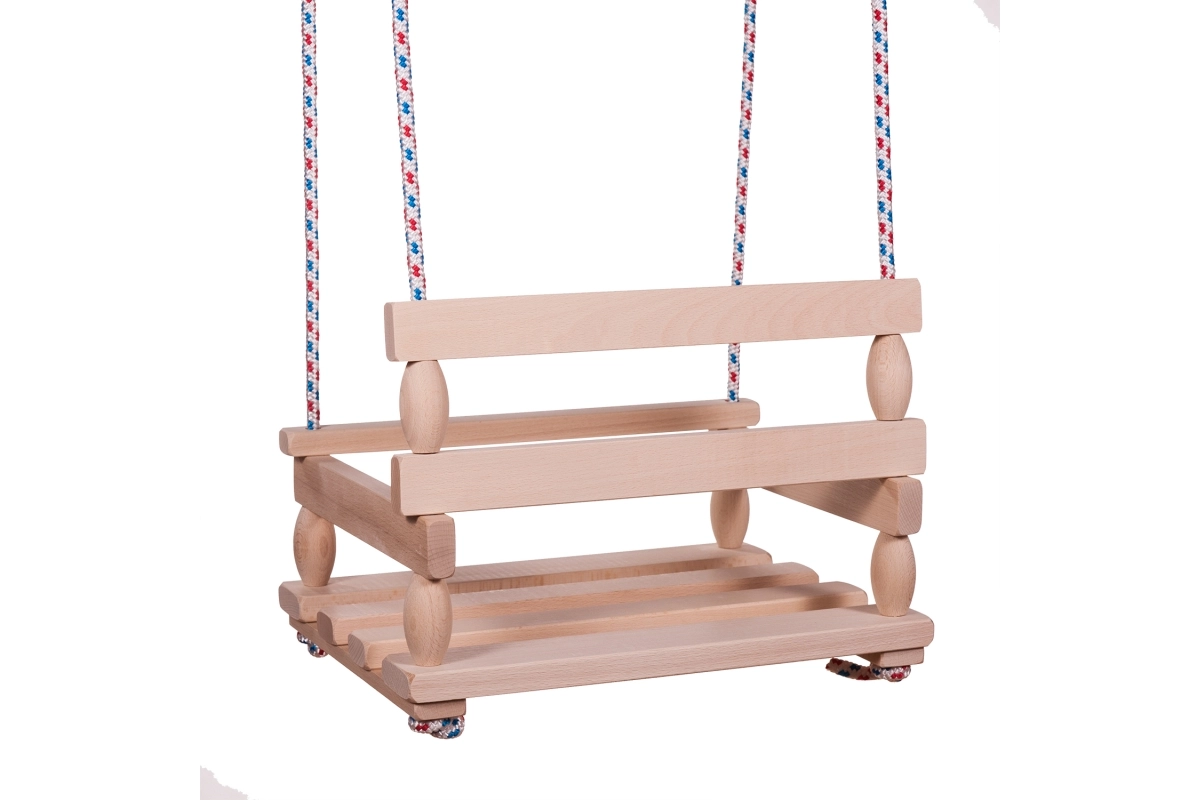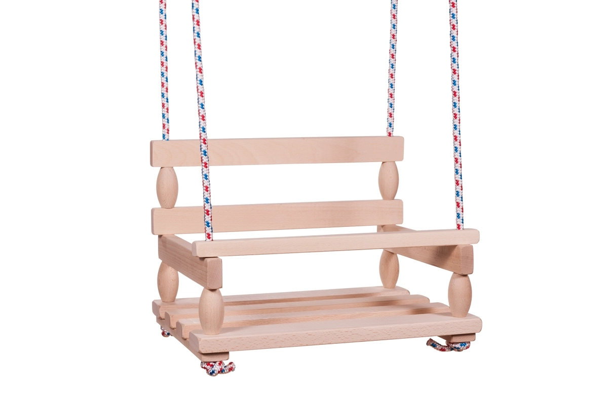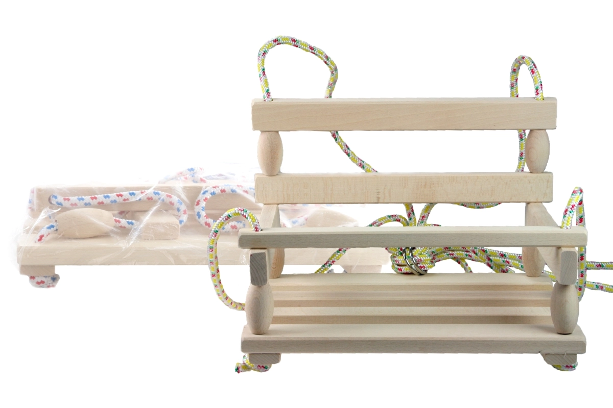 La estructura de madera duradera con superficie lisa garantiza una larga vida útil y un asiento cómodo en cada balanceo.