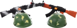 Divertido set infantil para pequeños soldados que incluye un subfusil de plástico con sonido de traqueteo de aprox. 53 cm y un casco militar con diámetro interior de aprox. 18,5 cm. Una gran elección para juegos de soldados, estimular la imaginación y vivir aventuras de acción. Apto para niños a partir de 3 años.