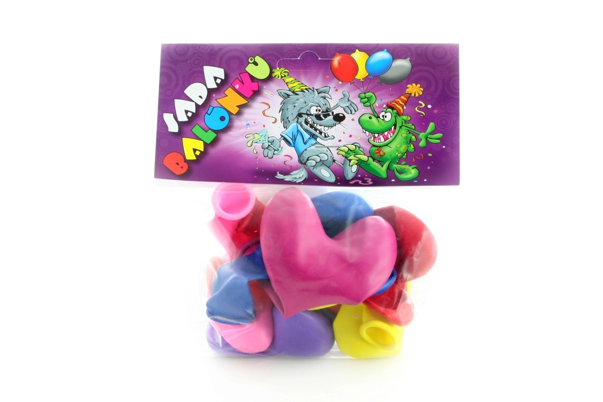 Enriquece tu celebración o fiesta con globos inflables de colores con forma de corazón. Este paquete contiene 7 globos, empaquetados en una bolsa de plástico.