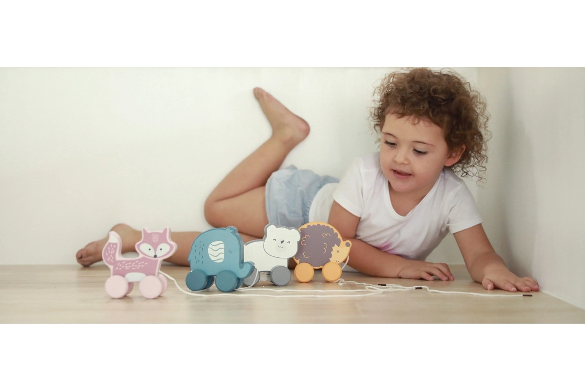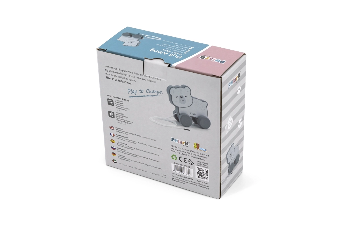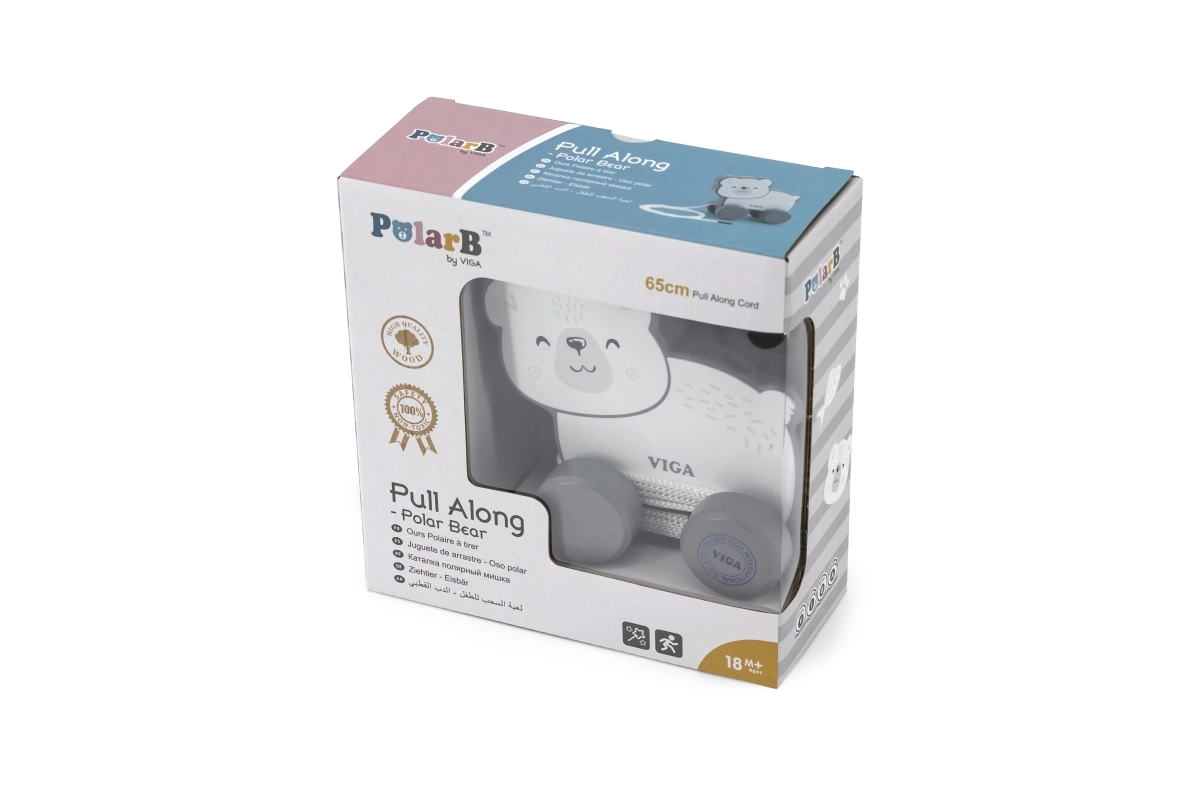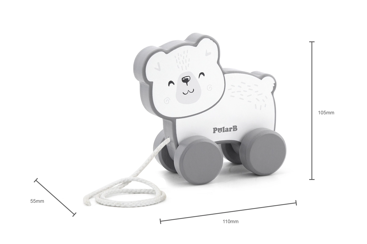Descubre la alegría de un juguete tradicional con esta jaladera de madera Oso polar. Está diseñada para un agarre y arrastre fáciles, lo que ayuda a desarrollar la coordinación mano-ojo y la motricidad fina de los niños a partir de 18 meses.