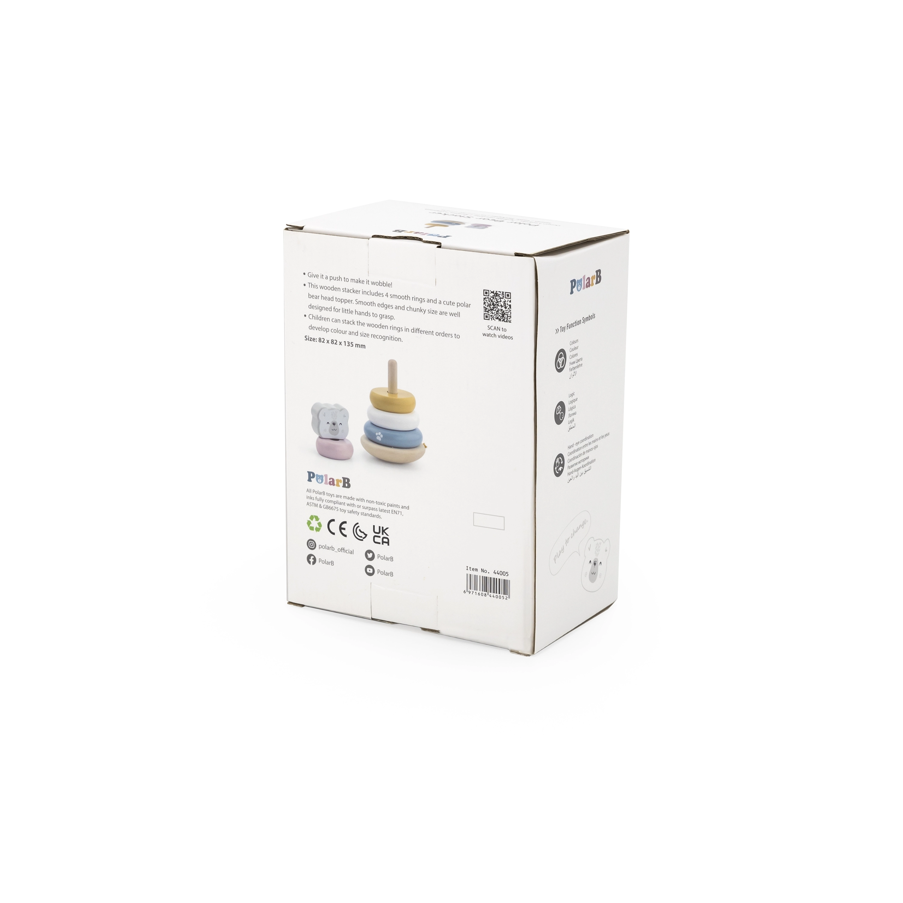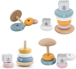 La pirámide educativa de madera con el motivo del oso polar es el juguete ideal para los más pequeños. Esta pirámide está equipada con seis anillos de diferentes tamaños y colores, incluido un anillo principal con cabeza de oso. Gracias a su resistente estructura de madera, el juguete no solo es seguro, sino también duradero.