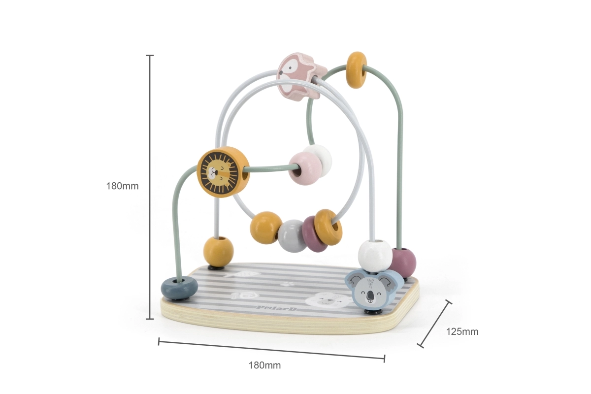 Descubra el laberinto de cuentas de madera que motiva el desarrollo de la motricidad fina y ofrece una experiencia educativa para los más pequeños. Este juguete de calidad está fabricado con madera natural y utiliza tintes seguros, lo que garantiza seguridad y una estética atractiva. Con cuentas de colores y formas de animales ensartadas en circuitos de alambre sinuosos, los niños fortalecen su coordinación y motricidad fina.