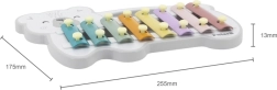 La construcción resistente, los bordes redondeados y las dimensiones compactas garantizan un uso seguro y cómodo incluso para los más pequeños. El xilófono es una excelente elección para desarrollar el sentido musical, la concentración y la paciencia.