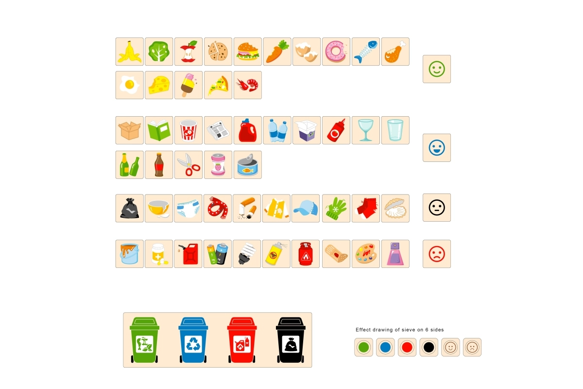 Puedes jugar con un solo niño o con varios a la vez. El objetivo es clasificar correctamente las fichas según sus imágenes y colores, y los niños pueden evaluar sus resultados. La coordinación, la concentración y la imaginación son habilidades que se desarrollan con este juguete. Con su enfoque ecológico, también motiva a los niños a proteger el medio ambiente.