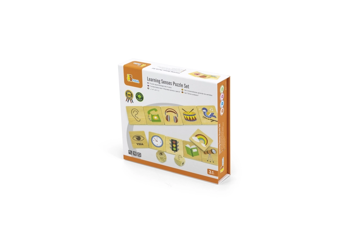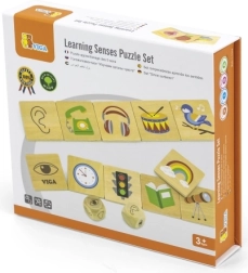 VIGA juego educativo rompecabezas de madera ofrece una forma ideal para que los niños desarrollen su pensamiento y coordinación. La tarea consiste en asociar objetos con los sentidos seleccionados, lo que incluye diversos elementos cotidianos.