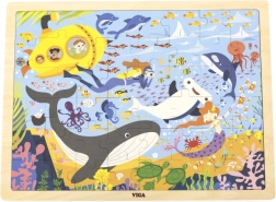 Con el rompecabezas de madera Vida Marina descubrirás una asombrosa variedad de criaturas marinas, como ballenas y pececitos, todo ello incluyendo un submarino amarillo.