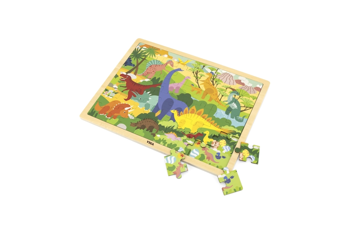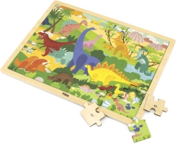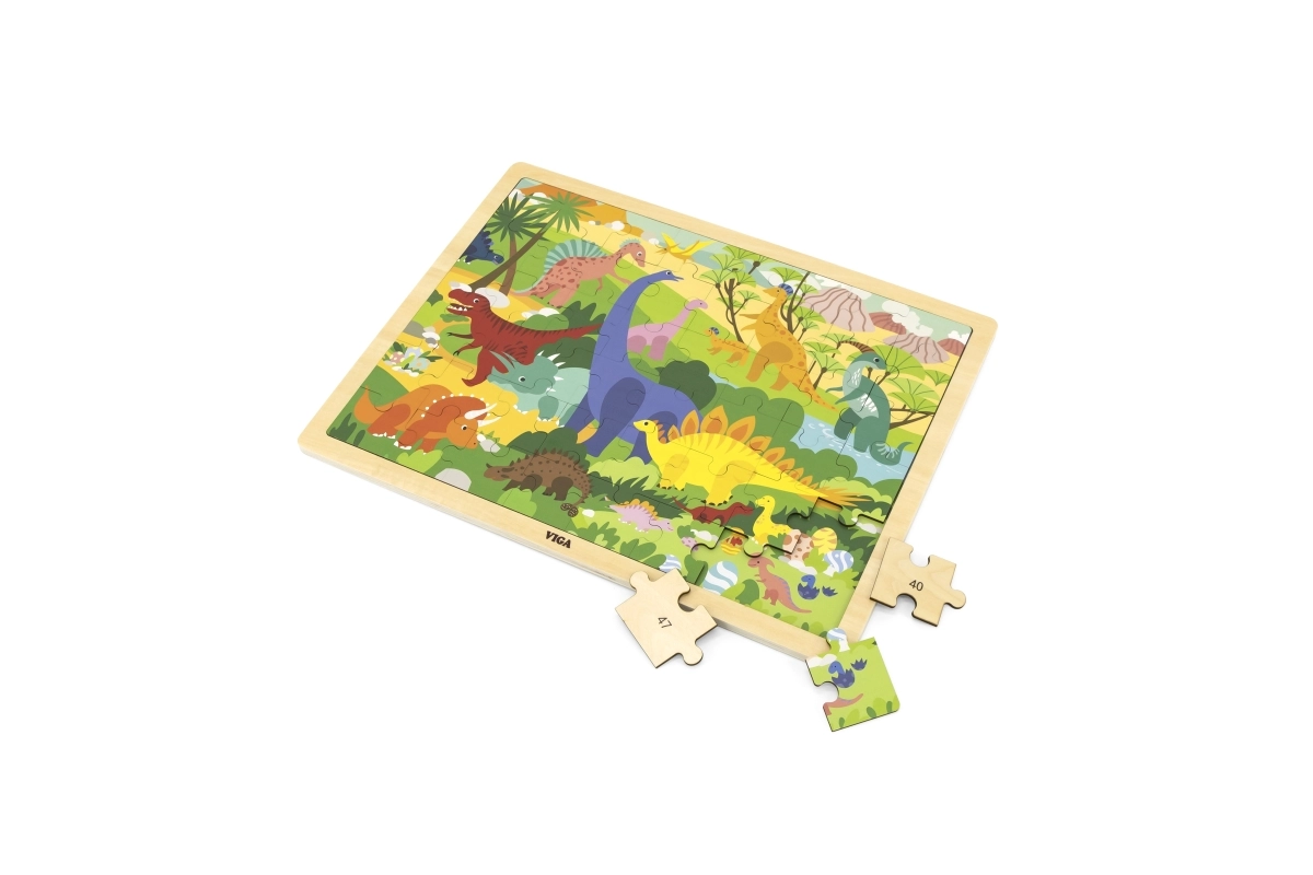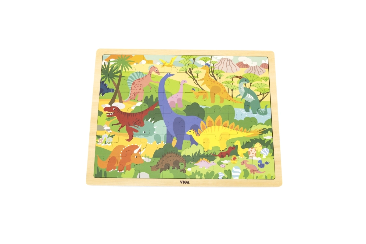 Brinde a los niños un montaje divertido y educativo con este rompecabezas de madera con motivo de dinosaurios. Gracias a sus 48 piezas, es ideal como el primer rompecabezas “más grande”, que desarrolla gradualmente las habilidades y la confianza de los pequeños constructores. Las piezas son firmes, se sostienen bien y se pueden colocar cómodamente sobre la tabla de madera con marco.