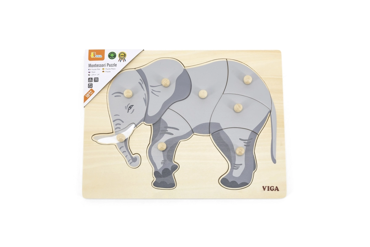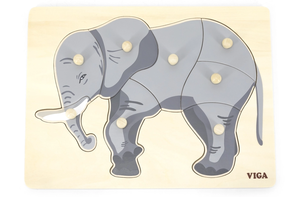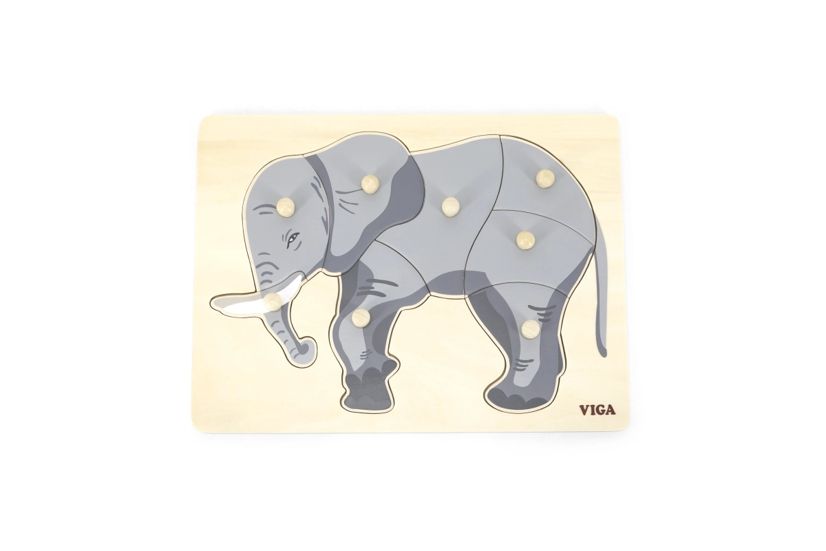 Este precioso encaje de madera con motivo de elefante es ideal para desarrollar las habilidades cognitivas y la motricidad fina de tus hijos. Todas las piezas cuentan con tiradores que permiten una manipulación sencilla para los niños.