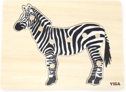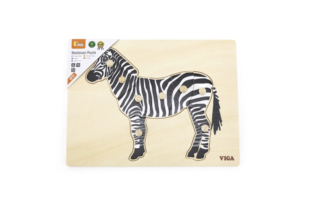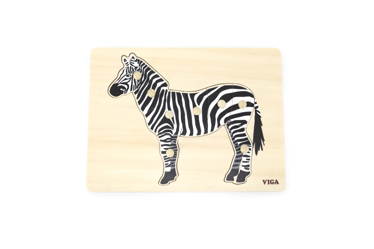 Este encaje de madera con cebra es el primer rompecabezas ideal para los más pequeños. Las piezas con pomos redondos se agarran fácilmente, lo que favorece un agarre correcto de los dedos y refuerza la concentración. El contraste en blanco y negro atrae y motiva a jugar repetidamente.