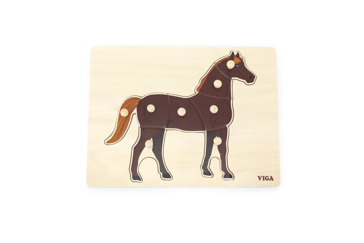 El encaje Montessori con un motivo realista de caballo invita a los niños a descubrir por sí mismos y a concentrarse. Gracias a las prácticas agarraderas, pueden sujetar fácilmente las piezas, aprender a reconocer formas y entrenar la precisión de los movimientos. El contraste entre la madera natural y el caballo marrón hace que los contornos sean claramente visibles y atractivos para el juego.