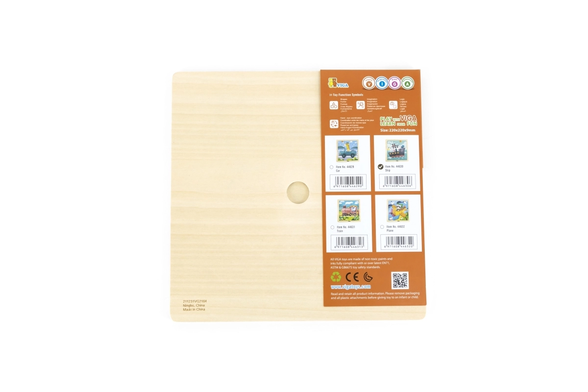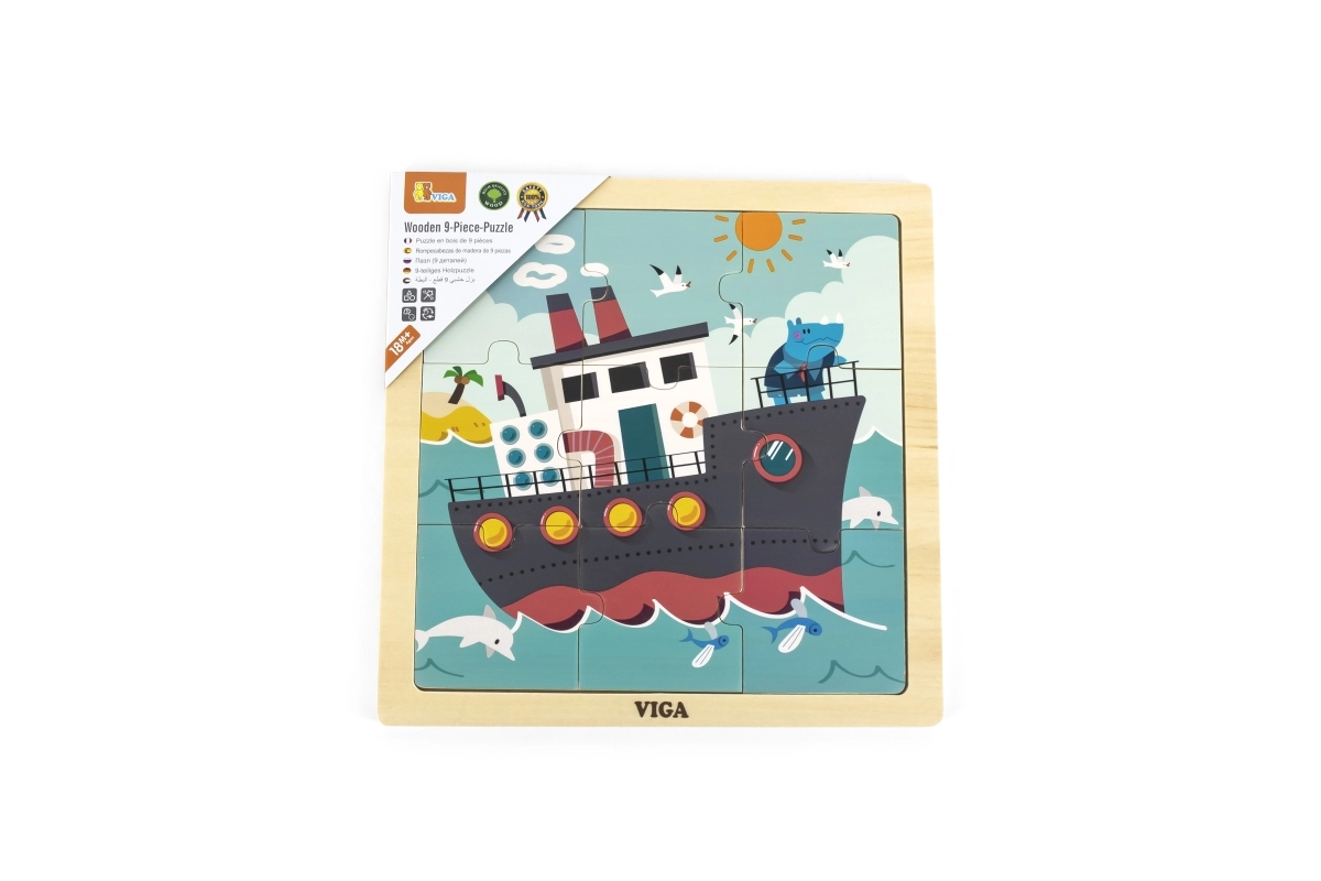 El producto está fabricado con madera de alta calidad, tiene bordes lisos y redondeados y está pintado con colores no tóxicos y seguros para los niños. Al colocar todas las piezas se crea la imagen completa del barco, ideal para los primeros logros de los pequeños constructores.
