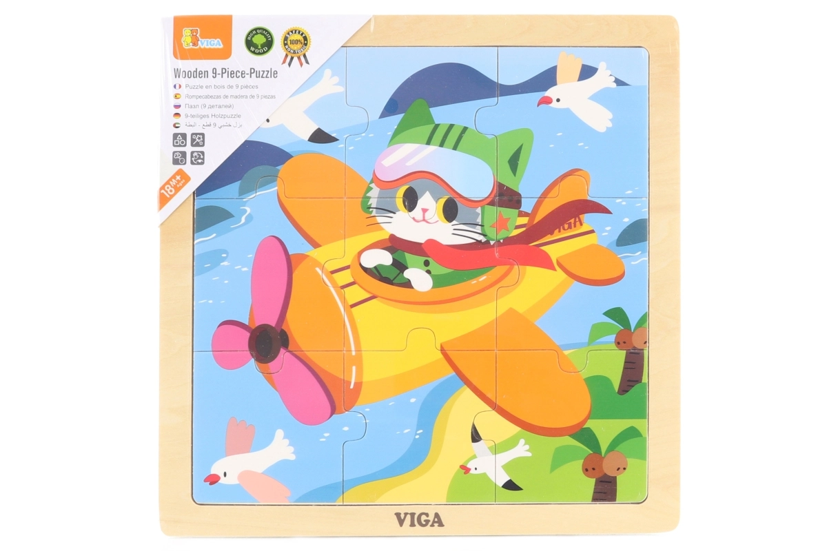 Un adorable rompecabezas de madera con motivo de un gatito en avión que encantará a cada pequeño explorador. Contiene 9 piezas grandes que se sujetan fácilmente y se encajan en un marco rígido. Ideal para los primeros ensambles, desarrolla la motricidad fina, el pensamiento lógico y la coordinación ojo–mano. La calidad de la marca VIGA garantiza una larga durabilidad y un juego seguro desde los 18 meses.