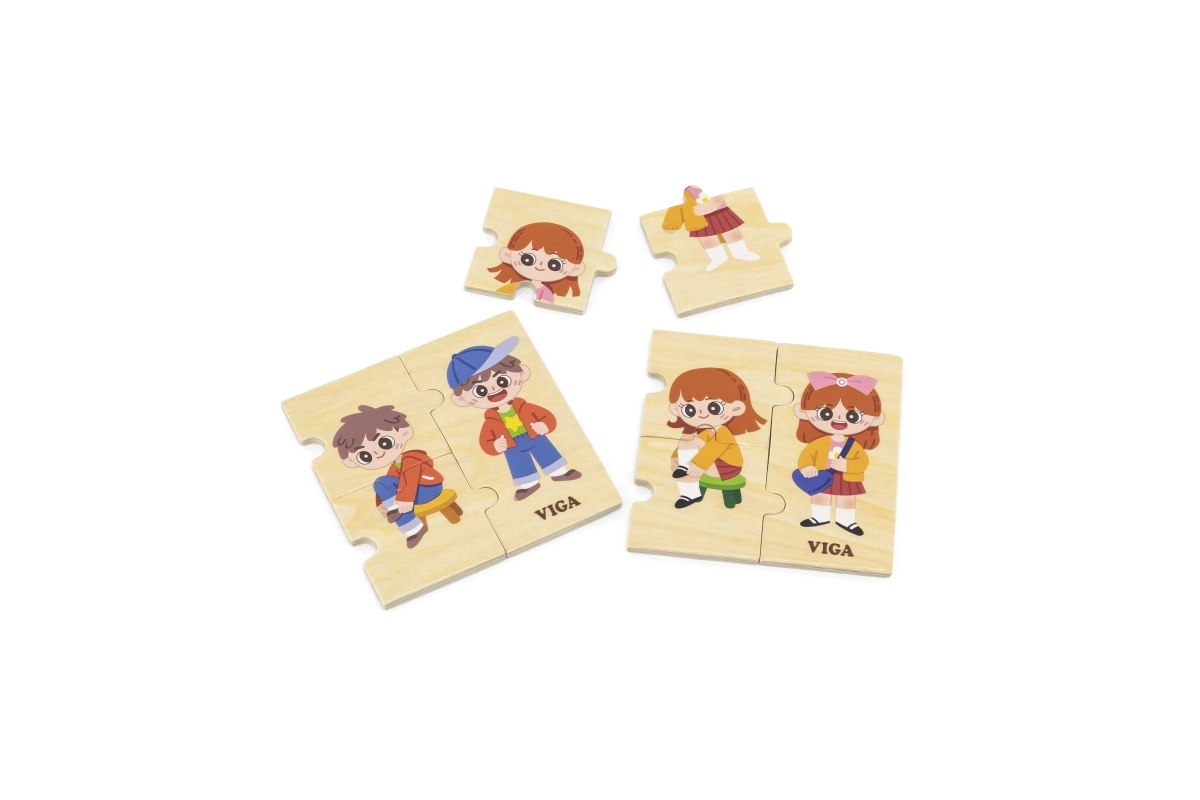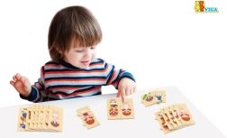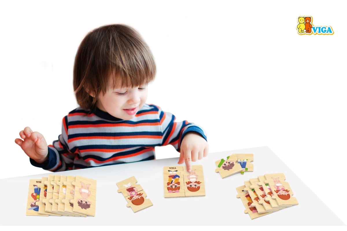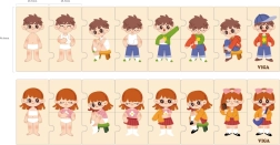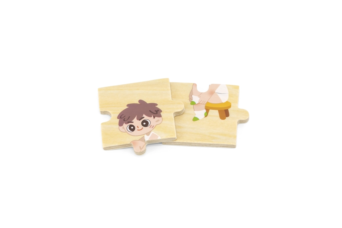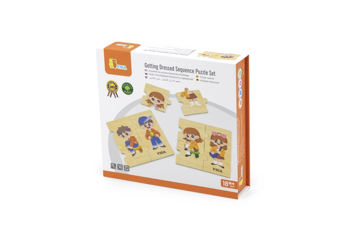 Este juguete educativo de madera de alta calidad enseña a los niños el proceso correcto de vestirse mediante el ensamblaje de piezas consecutivas con imágenes de un niño y una niña. Cada pieza tiene un motivo único y encaja con precisión, de modo que los niños practican la comprensión de relaciones y la paciencia mientras juegan.