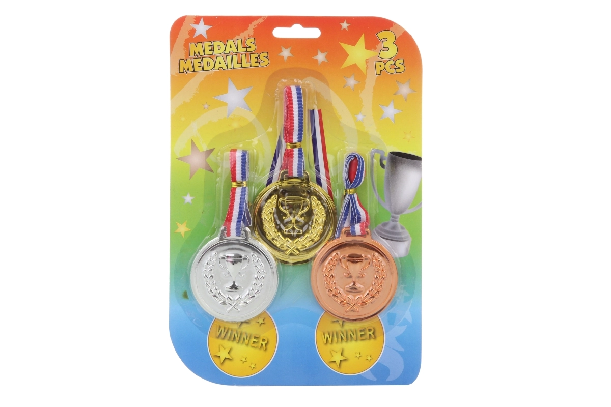 Este juego de medallas universal es una gran motivación para todos los pequeños deportistas y jugadores. Su fabricación de calidad y los tres colores clásicos permiten premiar a ganadores y demás puestos en cualquier competición. Gracias a su diámetro de aprox. 6 cm, las medallas son bien visibles y fáciles de llevar.