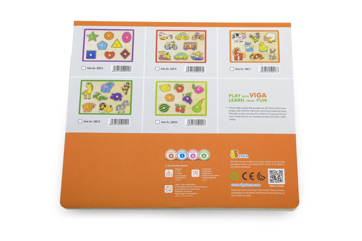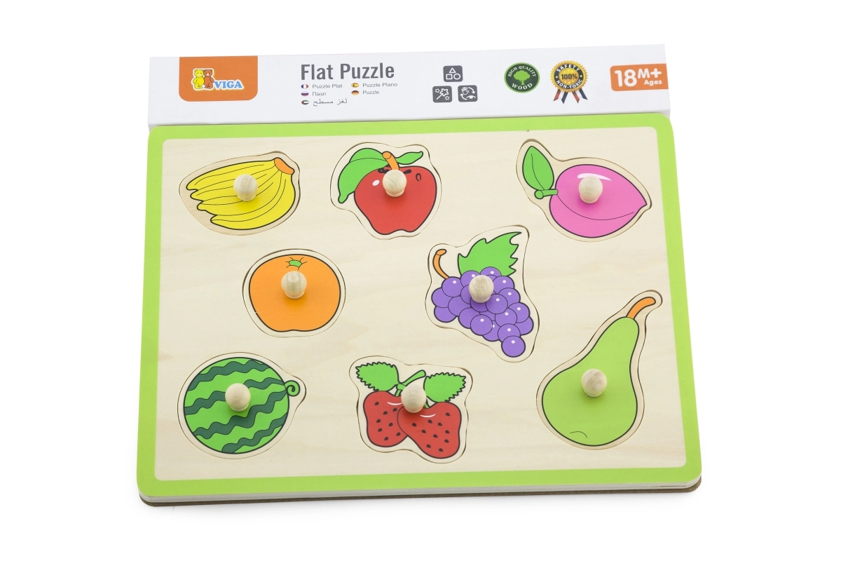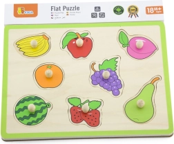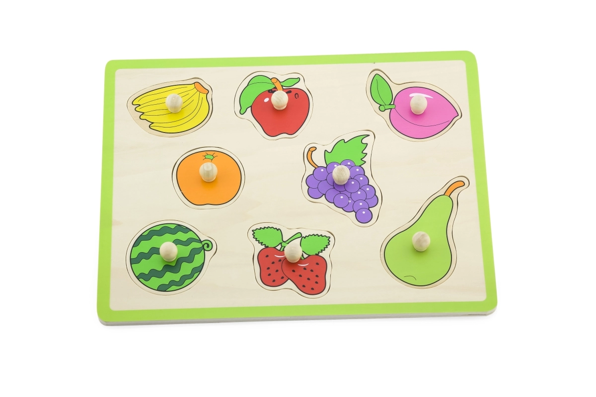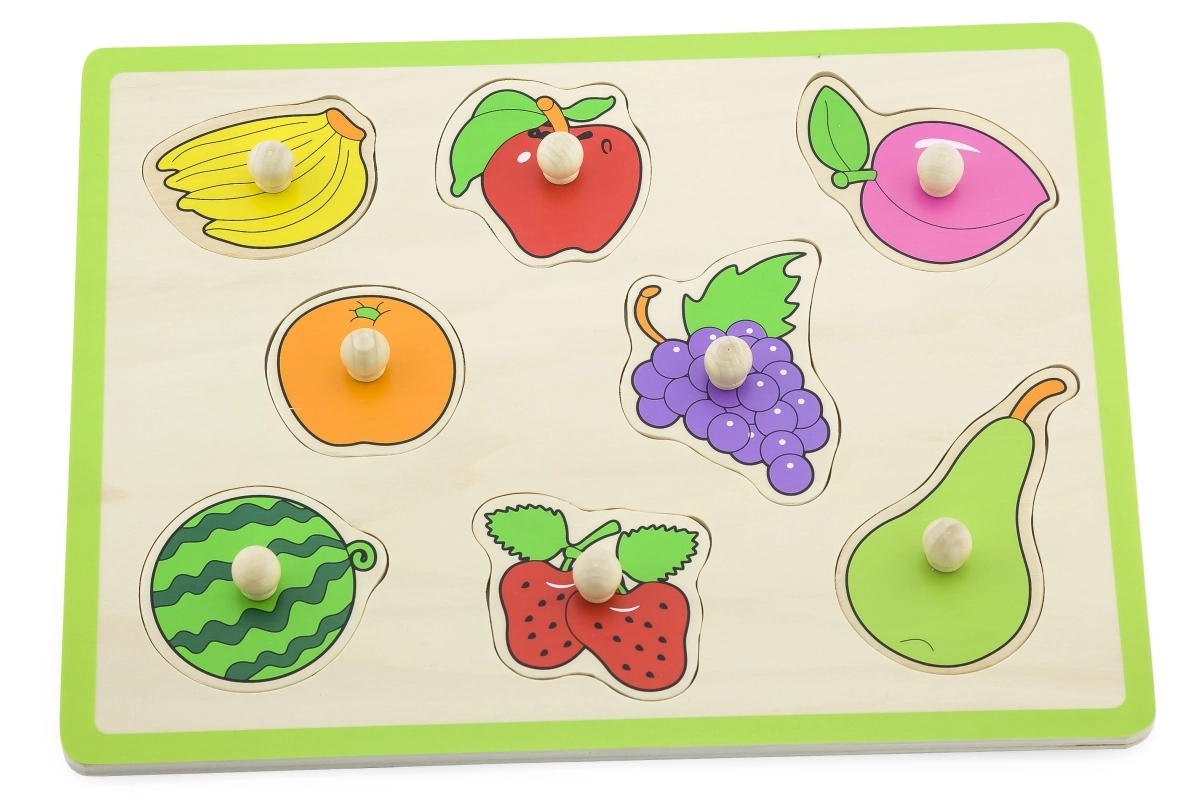 Este encaje de madera de calidad con frutas ofrece a los niños una forma divertida de aprender. Cada pieza cuenta con un práctico botón de madera que facilita el agarre por las manos pequeñas. Durante el juego, los niños practican la coordinación, la paciencia y el reconocimiento de formas y colores.