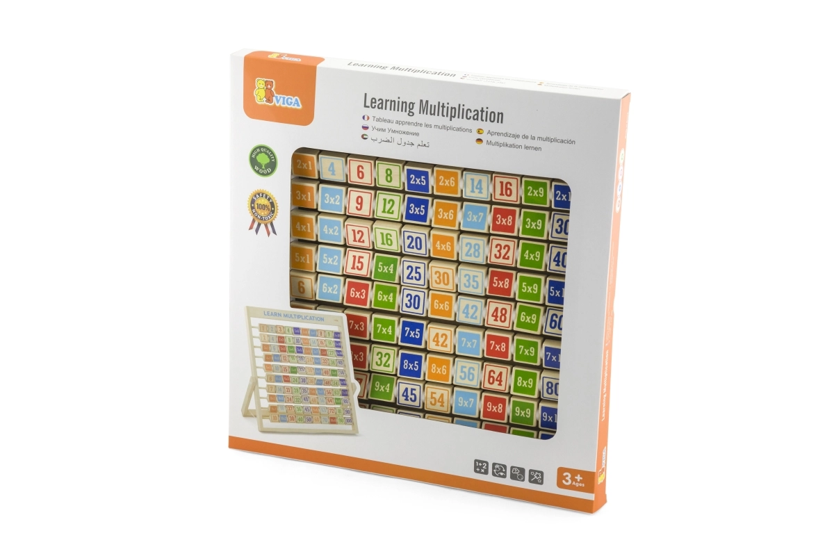 ¡Descubre lo divertida que puede ser la matemática! Esta tabla de multiplicar de madera con cubitos de colores ayuda a los niños a comprender fácilmente la multiplicación y a practicar ejercicios de forma lúdica. En cada pieza hay un ejercicio y en el reverso la solución, para que los niños puedan comprobar la respuesta al instante. Ideal para el aprendizaje en casa y para actividades en el aula o guardería. Madera resistente, cubitos de colores claros y autocorrección de resultados fomentan la concentración y la alegría por descubrir.