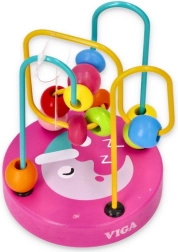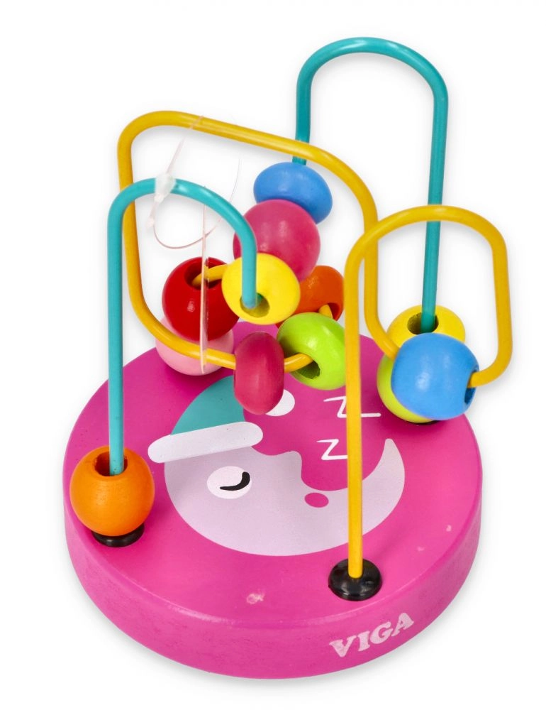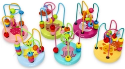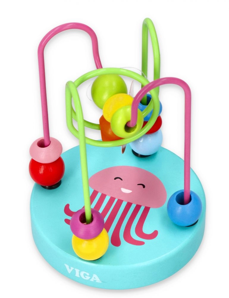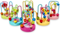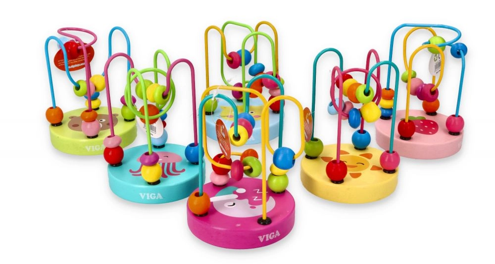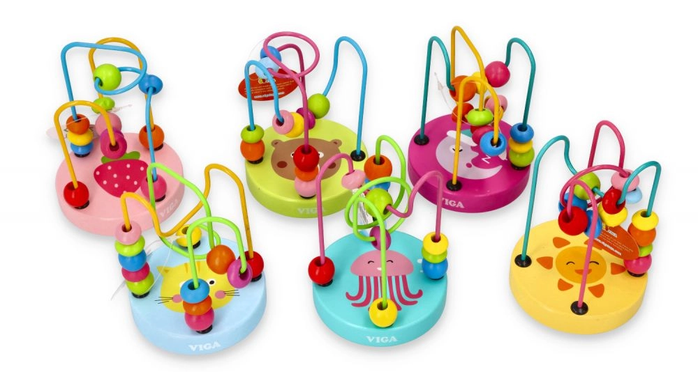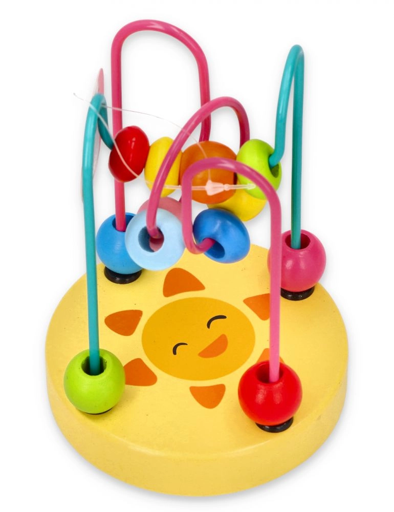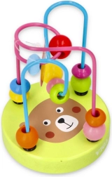 El laberinto de cuentas de madera, también conocido como centro de motricidad, es un juguete educativo clásico que desarrolla la motricidad fina y la coordinación ojo–mano. Los niños desplazan cuentas de distintas formas por recorridos metálicos curvos, entrenando los movimientos precisos de los dedos y el razonamiento lógico. Los motivos coloridos sobre la sólida base de madera motivan al juego y mantienen la atención.