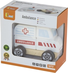 - Rompecabezas de madera y vehículo con ruedas – ambulancia